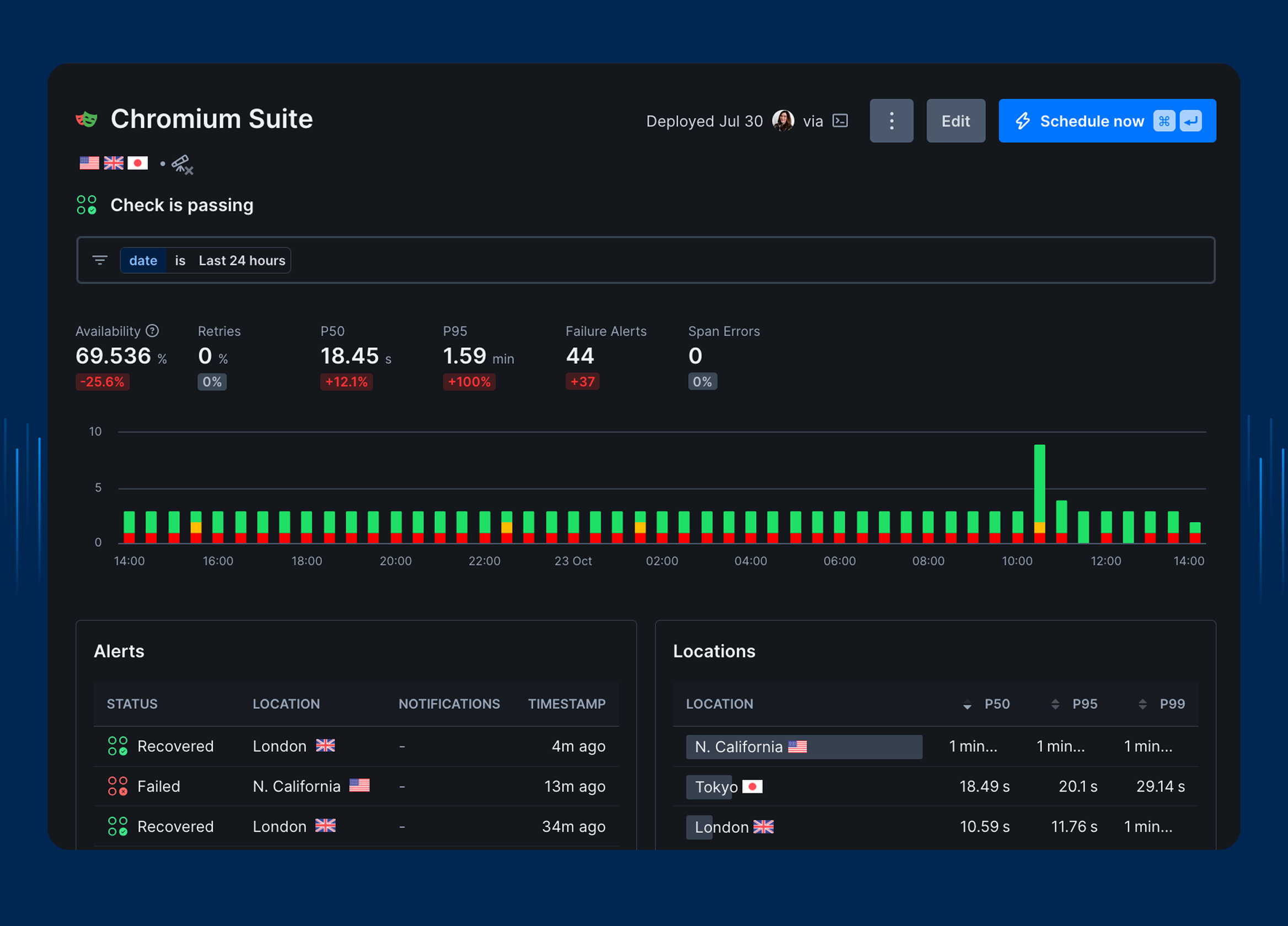 Private Locations now support playwright test performance, availability metrics and graphs. Starting on v6.1.5.