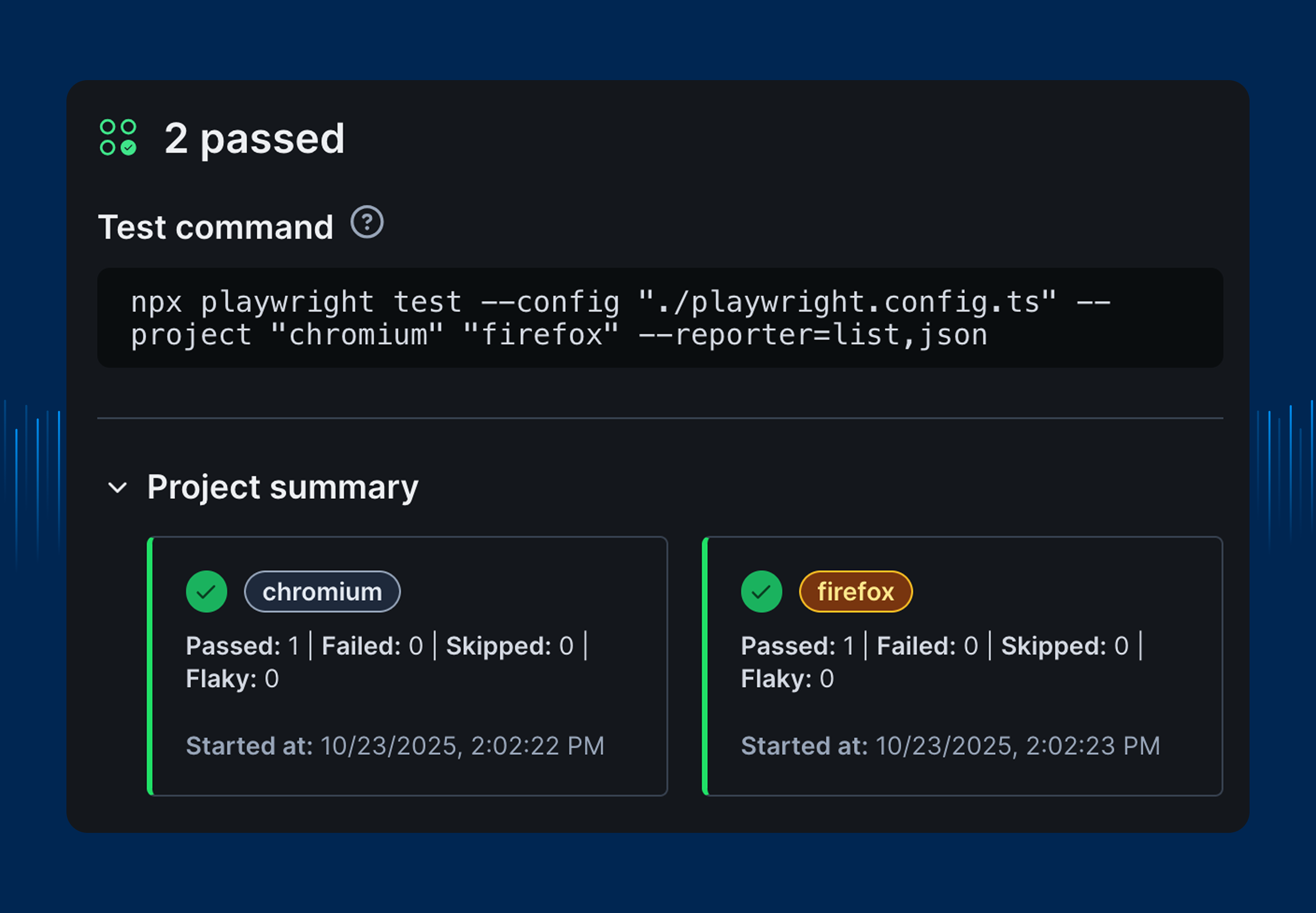 We’re thrilled to announce that Playwright Check Suites are now Generally Available (GA). Bringing full Playwright test suite support to your monitoring workflows, with a native developer experience and new visibility into cross-browser, cross-project test execution.