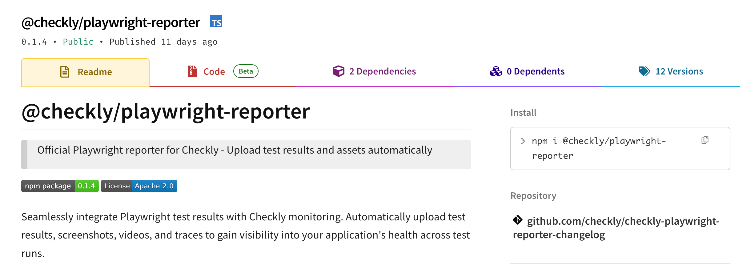 Our latest flagship checks, Playwright Check Suites, now come with new features. Additionally, there's a new Playwright Reporter, which you can enable by adding it to your playwright.config.ts and running npx playwright test.