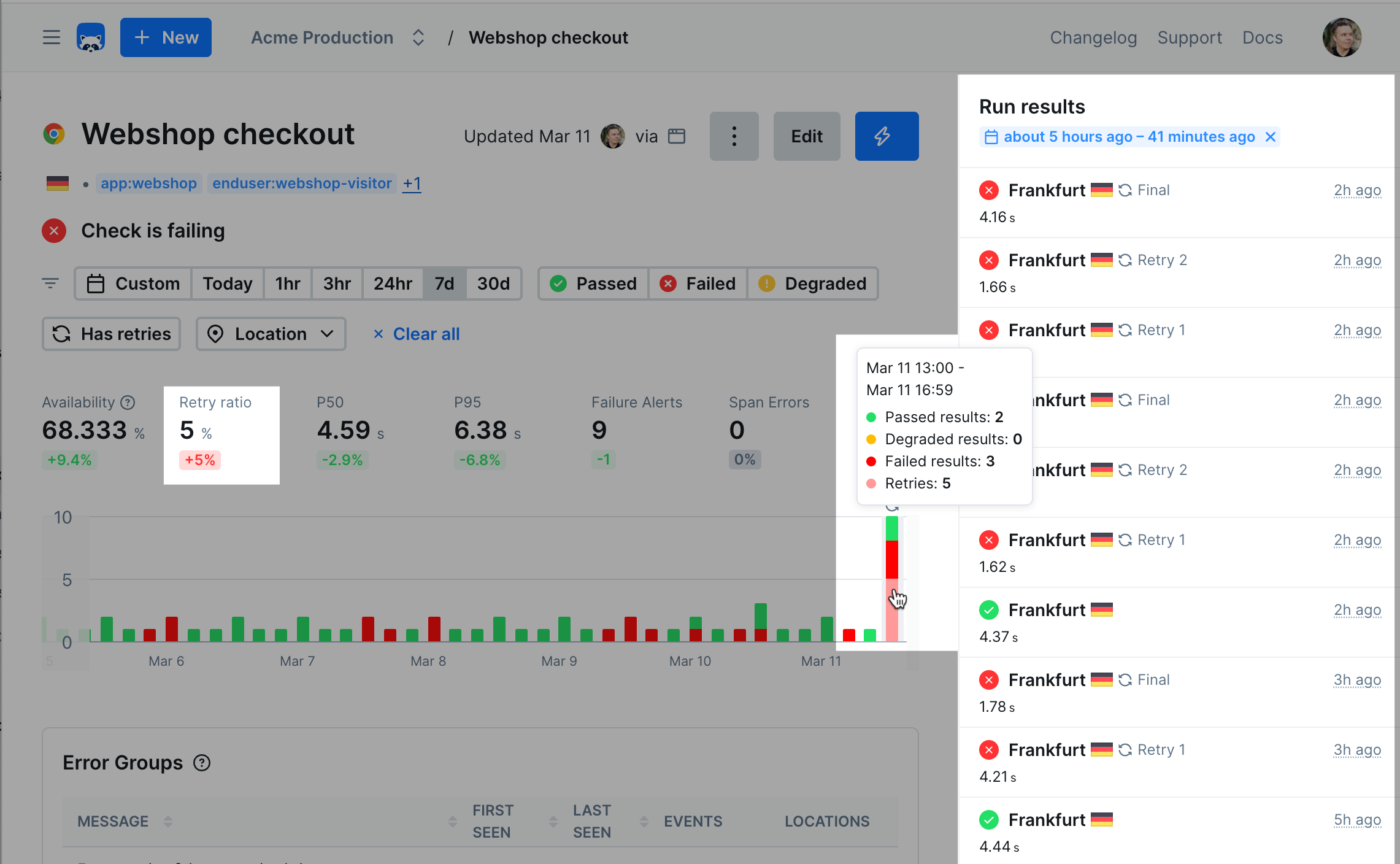 Rocky AI — Checkly’s AI agent — automatically analyzes, categorizes, and summarizes failures from your monitors and synthetic checks.