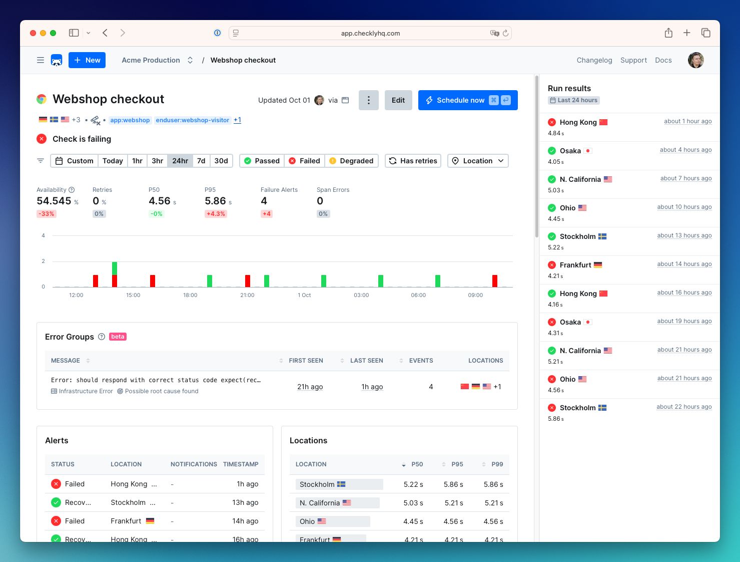 We redesigned the check overview page to get you to what matters, faster. This update also introduces a new feature: Error Groups. While still in beta, they already make it much easier to see which errors occurred over time, how often, and in which locations.